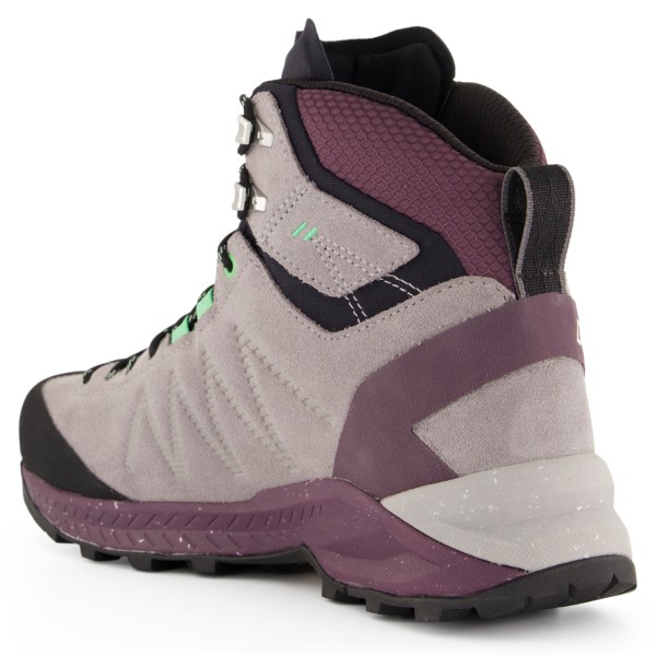 Podeszwa dostosowuje się do obrotu 360°, oferując komfort i stabilność na każdym rodzaju terenu. Pięta zawiera miękką piankę EVA, która amortyzuje wstrząsy, natomiast przednia część jest sztywniejsza i posiada strefę wspinaczkową w okolicy palców, co zapewnia precyzję i wsparcie na półkach skalnych i szczelinach. Bieżnik Vibram XS-Trek z wyraźnymi wypustkami poprawia przyczepność podczas zejść i wspinaczki.
